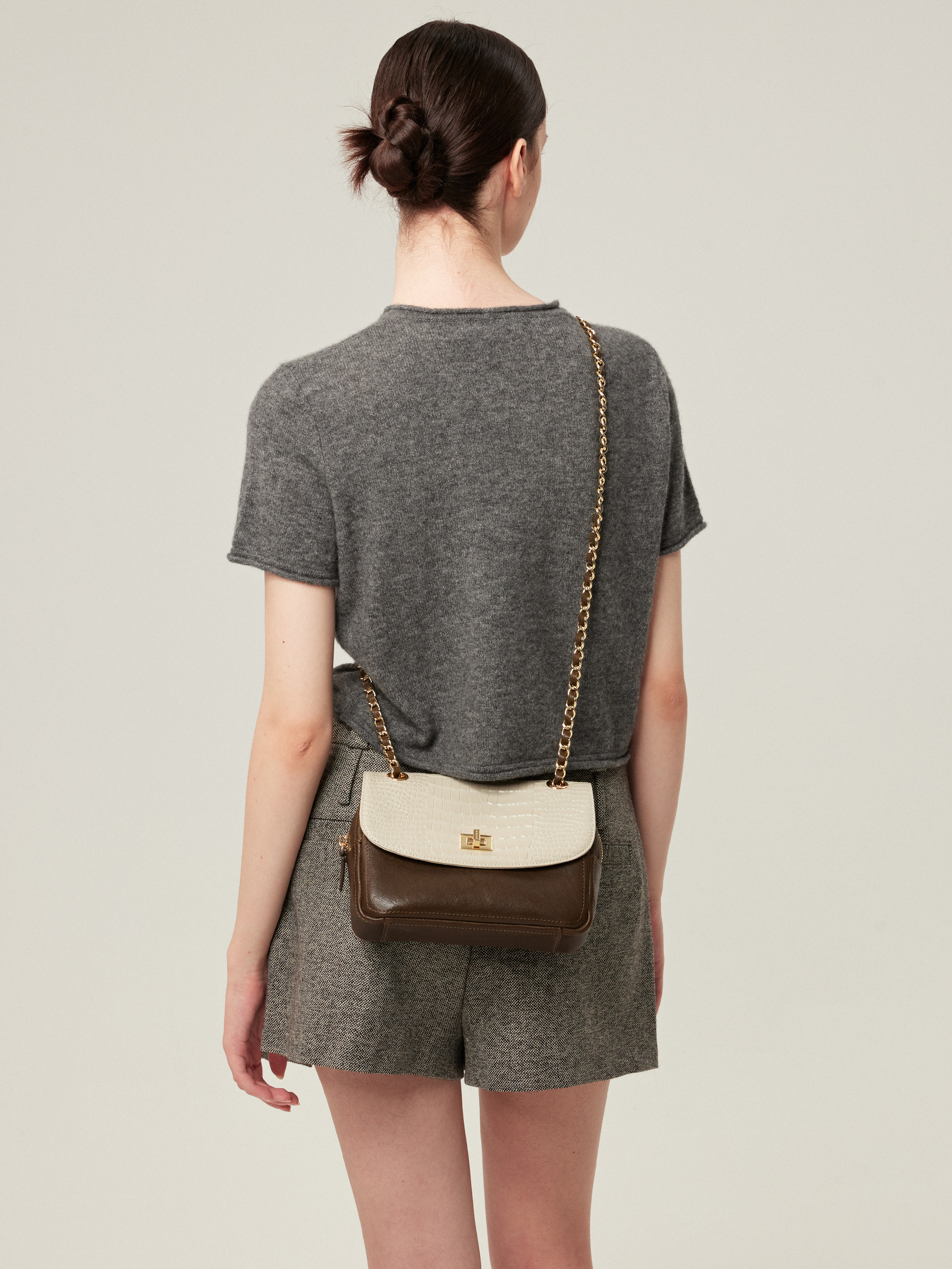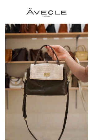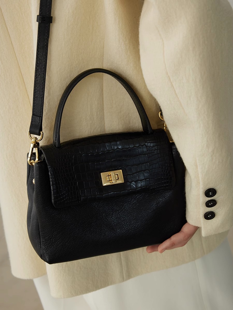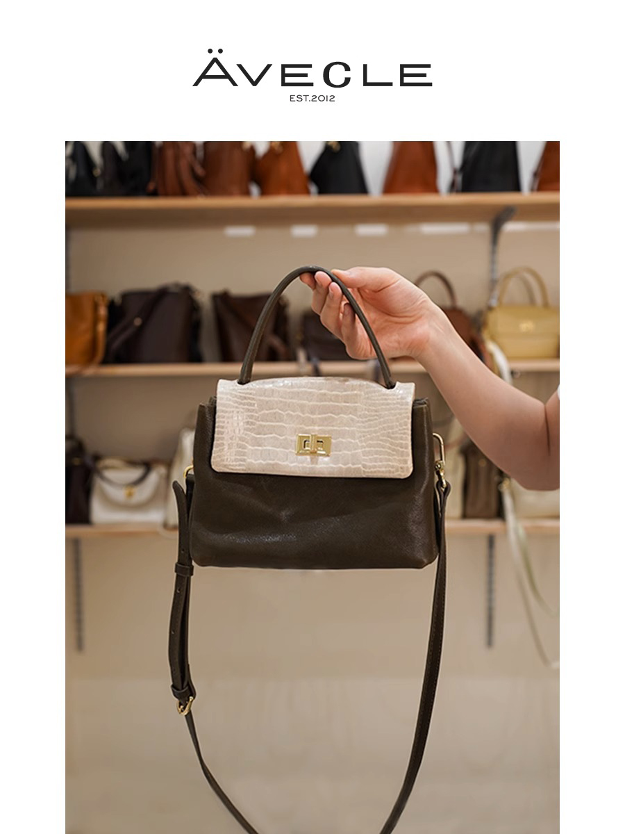 Vegetable tanned wax-spoken crocodile pattern genuine leather 2023 autumn and winter niche design crossbody cowhide town store color-blocking handbag