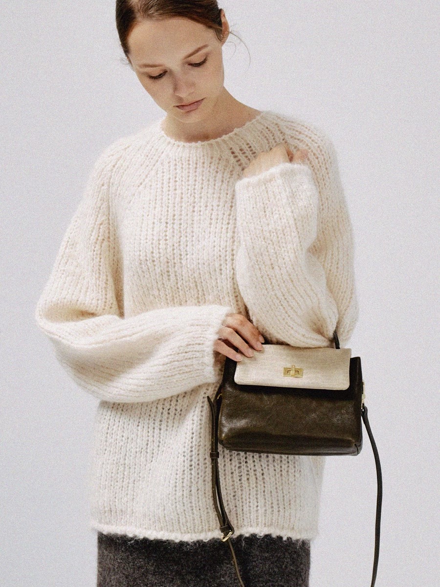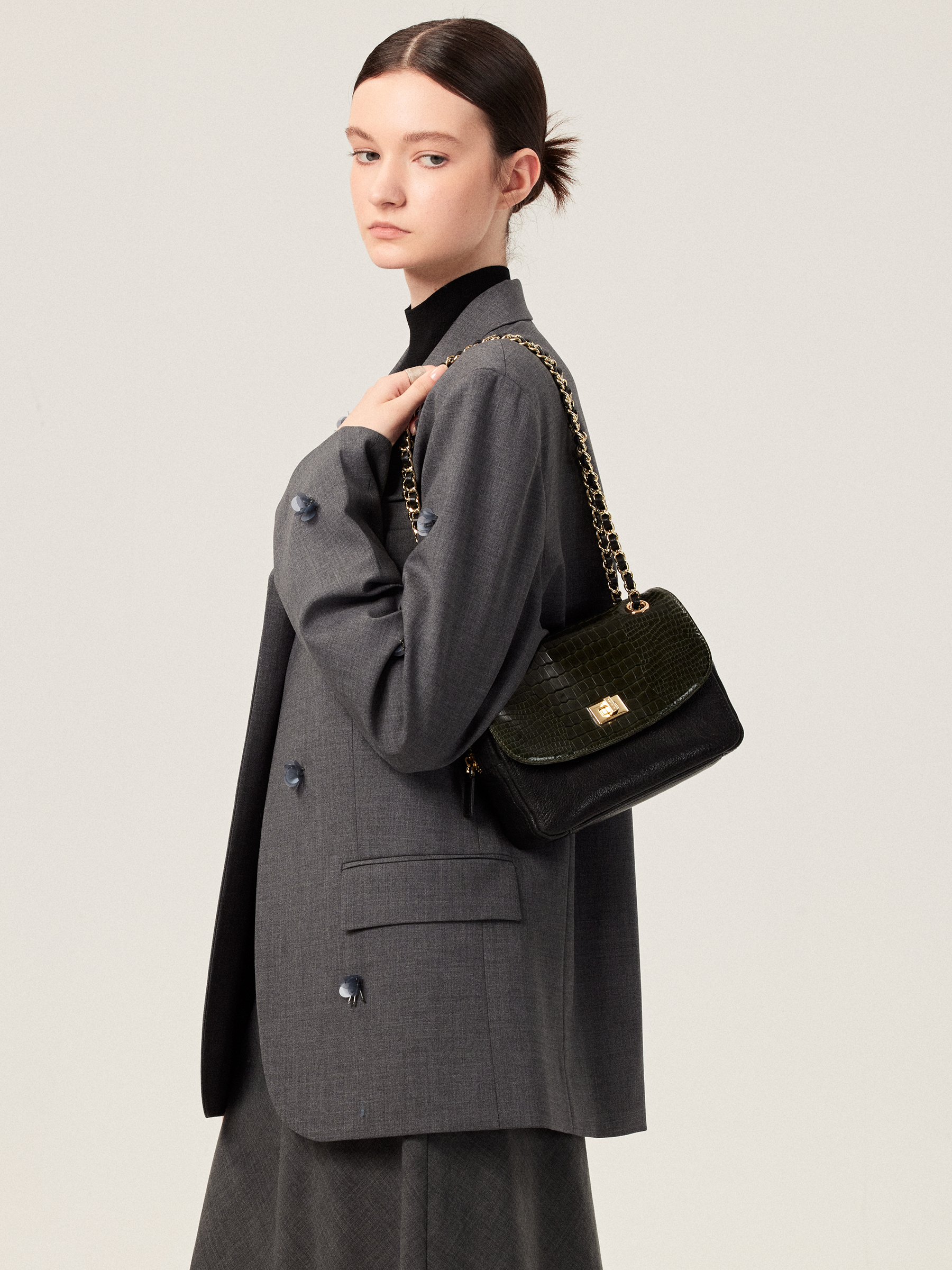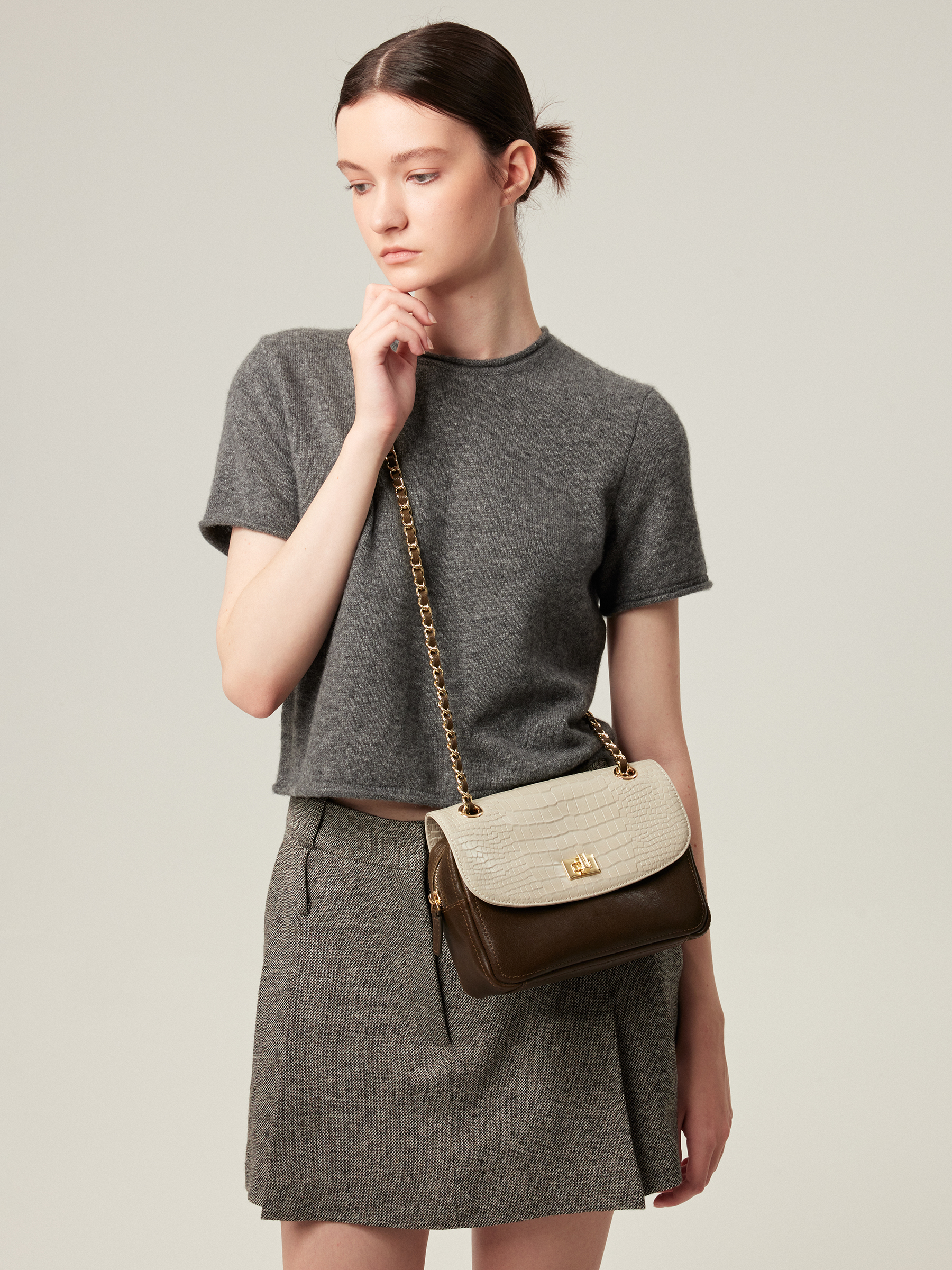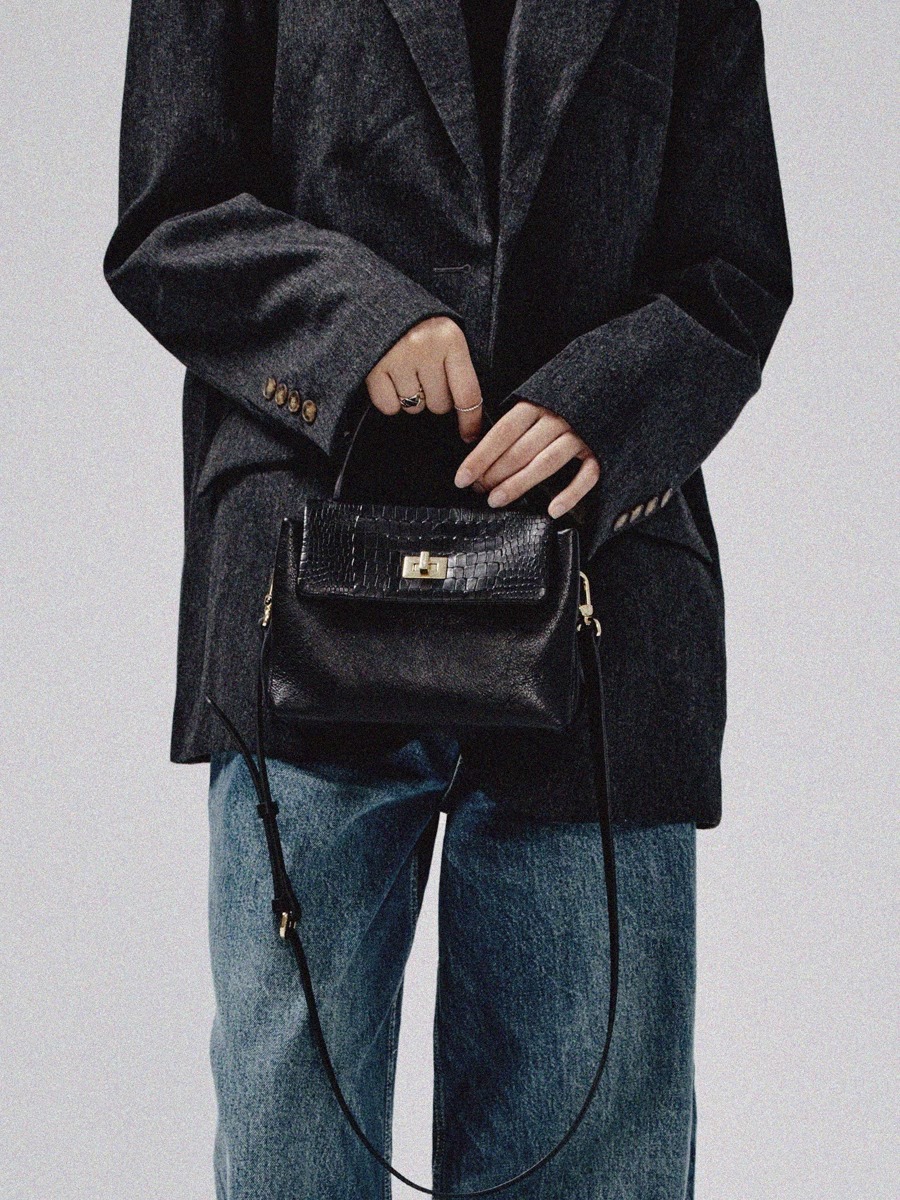 Vegetable tanned wax-spoken crocodile pattern genuine leather 2023 autumn and winter niche design crossbody cowhide town store color-blocking handbag