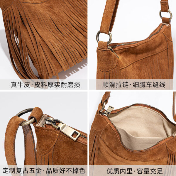 Home / Bag / Handbag / American tassel bag niche frosted cowhide casual crossbody bag retro real