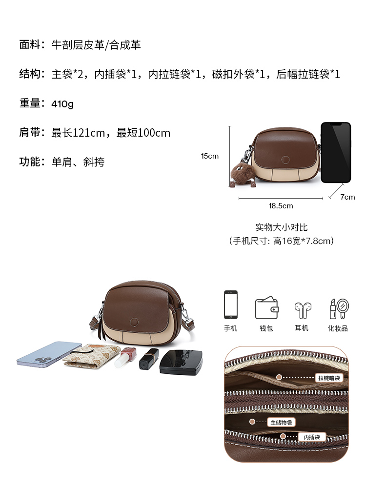 Large capacity 2024 new commuter style high-end light luxury bag genuine leather women’s bag fashionable shoulder bag cowhide handbag