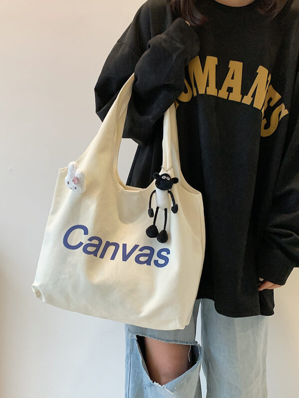 Home / Bag / Handbag / Canvas Bag Women’s 2024 New Tote Bag College Students’ Class Large Capacity One-Shoulder Literary and High-Sense Canvas Bag