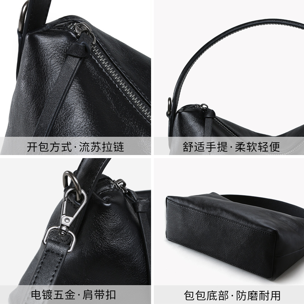 High mercerized matte cowhide leather retro high-end pillow bag large capacity